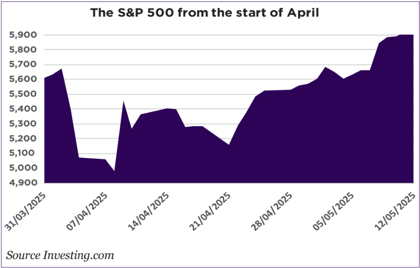 Markets rebounded on the news because it was interpreted as the end to high tariffs. This optimism was reinforced when, in mid-May, the US and China agreed a mutual 90-day reduction of 115% in the blockade level of tariffs they were applying to each other.