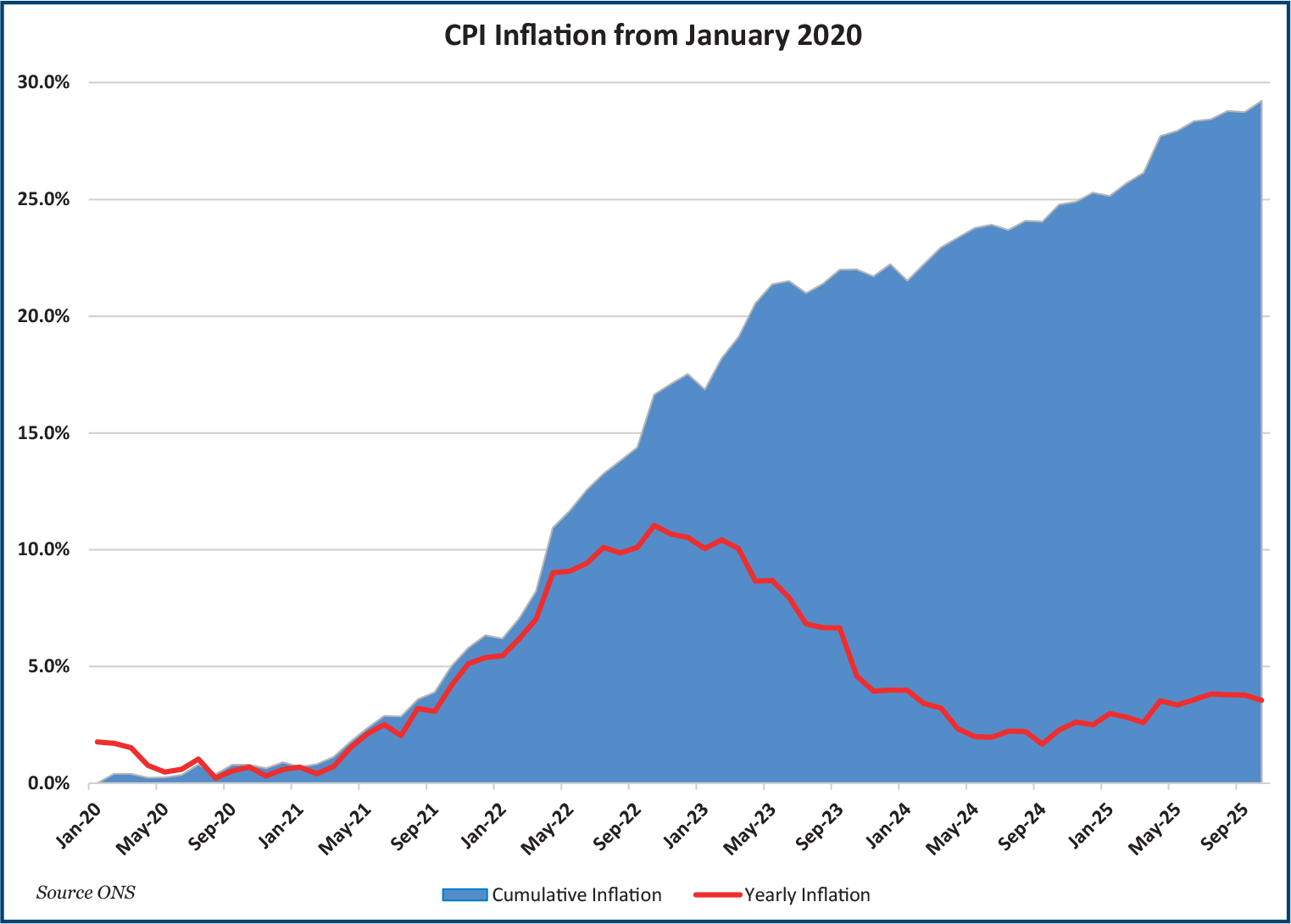 Most people are familiar with the inflation rate, published each month by the Office for National Statistics as the yearly Consumer Prices Index (CPI) inflation rate. The current consensus is that the figure reached a peak in September and will fall in 2026.